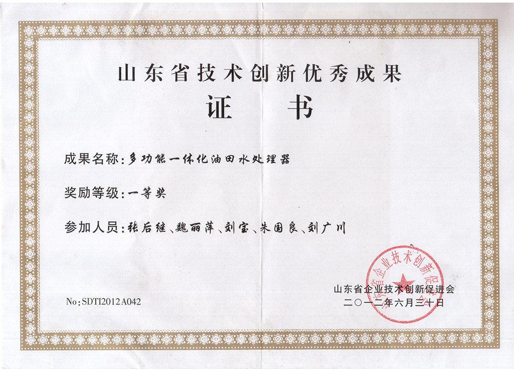 山东省技术创新优秀成果一...