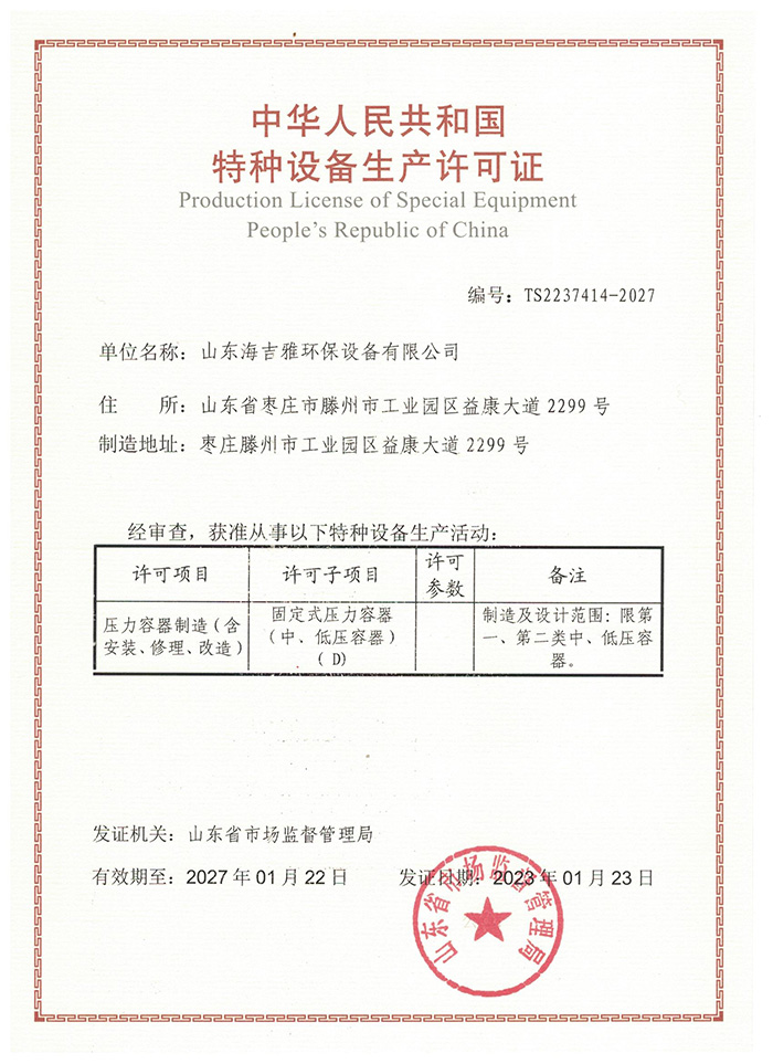 特种设备生产许可证